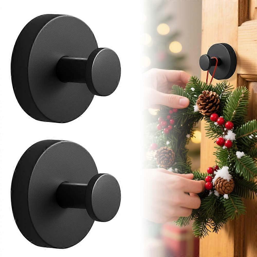 Suction Cup Hooks Heavy Duty NoDrill Waterproof for Shower Bathroom Towels or Front Door Wreaths (2 Black)