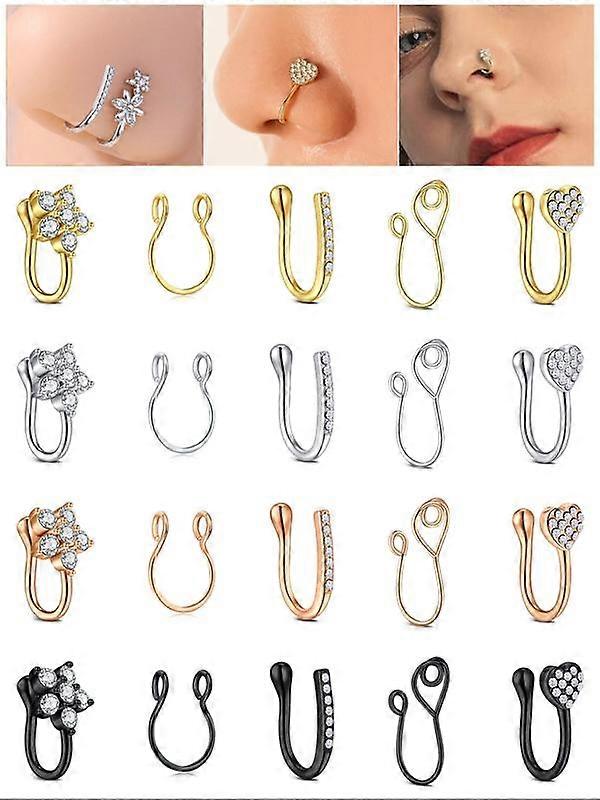 Women's Stainless Steel Butterfly Heart Chain Print Nose Ring Clip on Jewelry Silver Color Party Style All Season Wear