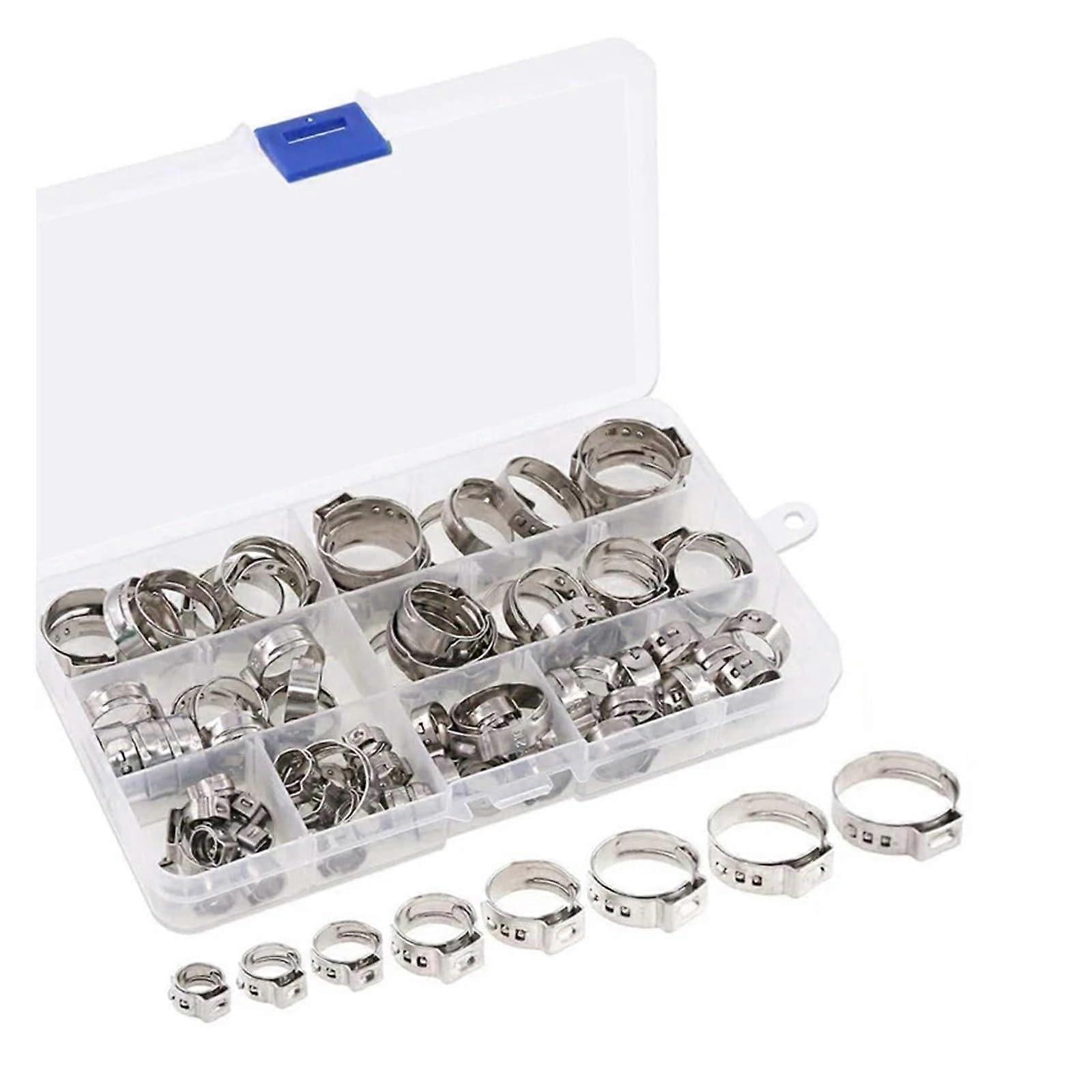 130pcs 304 Stainless Steel Hose Clamps Set Single Ear Stepless 5.823.5mm with Cinch Pliers and Box