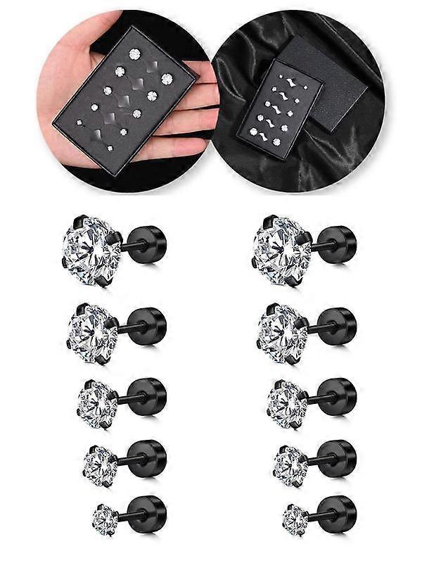 Street Style Glittering Minimalist Cartilage Earrings, 5 Pairs Stainless Steel Ear Piercing Jewelry for Party, Daily Decor, Trendy All-match