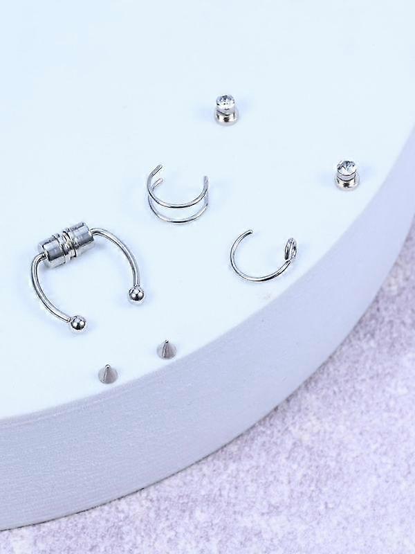 7pcs/set Unisex Stainless Steel Magnetic Nose Rings, Punk Style Nose Rings, Fashionable Body No Piercing Jewelry for Women & Men