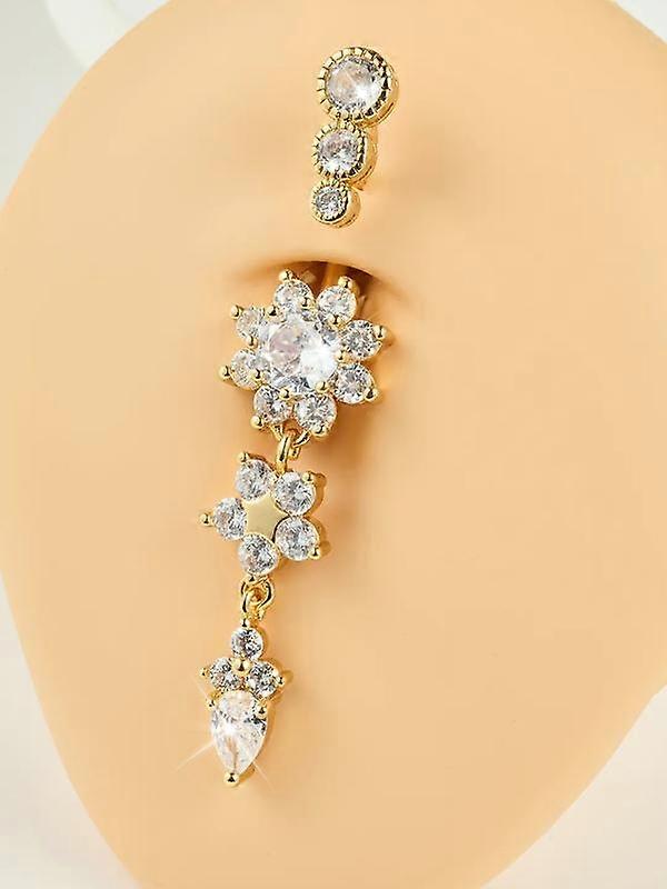 Shiny Cubic Zirconia Navel Ring with Star Flower and Prong Pendant, Stainless Steel Belly Button Jewelry for Women, Elegant Everyday and Par