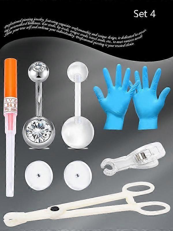 Butterfly CZ Navel Piercing Kit with Stainless Steel Belly Ring, Home DIY Navel Jewelry Piercing Set for All Seasons, Unisex Body Jewelry, H