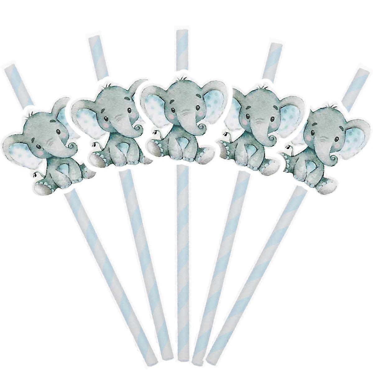 20Pcs Cute Animal Theme Elephant Disposable Juice Drinking Paper Straws for Kids Birthday Baby Shower Party Decoration