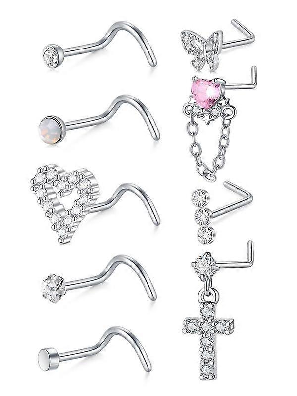 Cute Heart & Cross Design Nose Studs, Rhinestone Decor Nose Rings, Stainless Steel Body Piercing Jewelry for Women & Men, Trendy All-match &