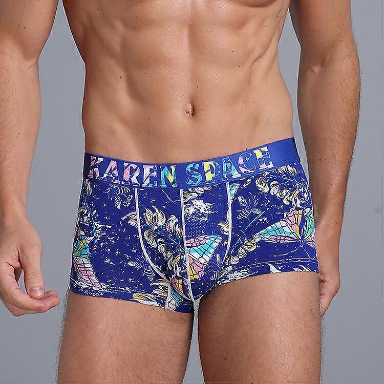 Ice Silk Mens Underwear Boxer Briefs Floral Print U Pouch Panties Flex Waistband