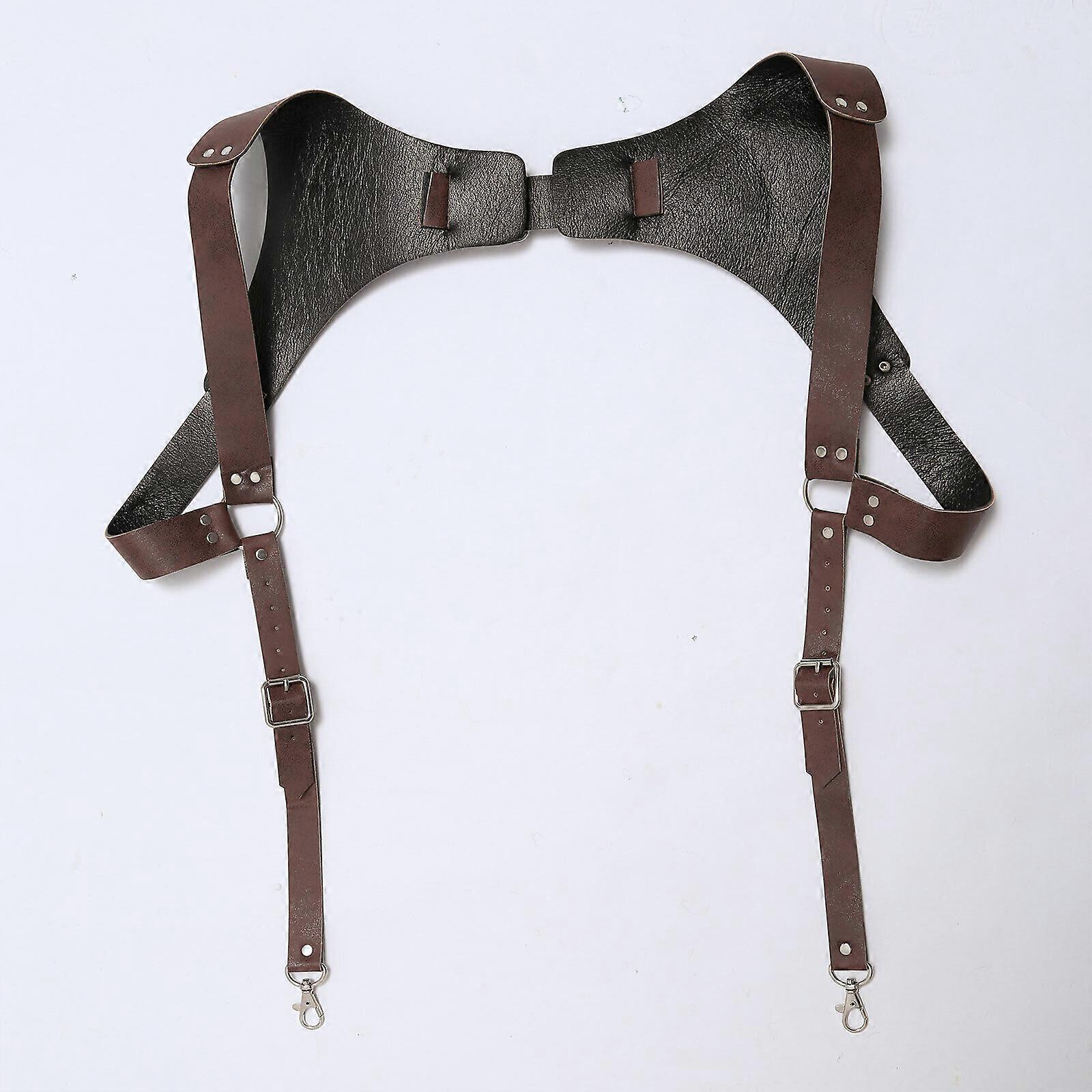 Brown Vintage Leather Suspenders Braces Shoulder Strap Belt Harness for Men O6M3