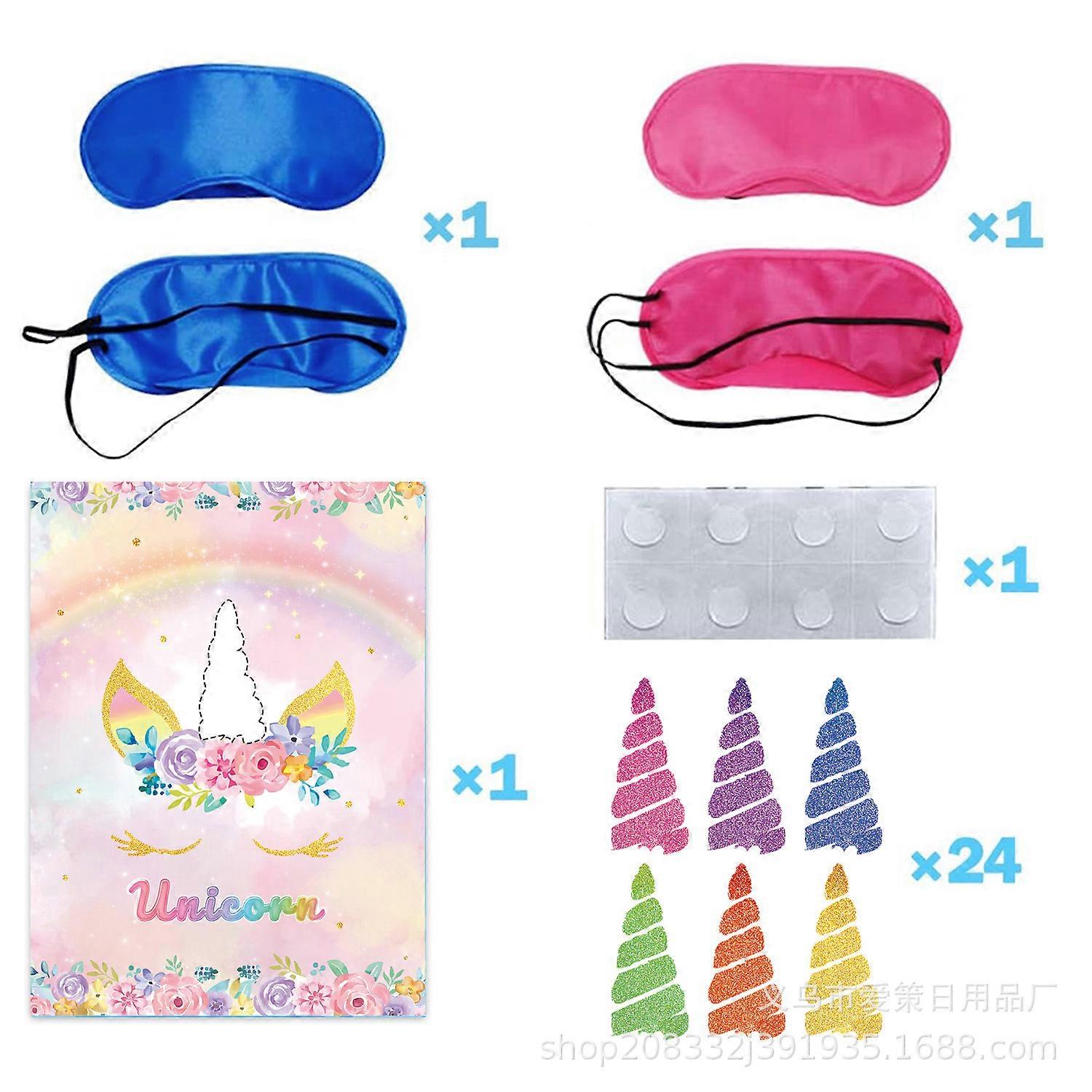 Pink Unicorn Kids Party Blindfold Game Poster Pink Eyebrows Birthday Decoration Game Stickers Eye Mask