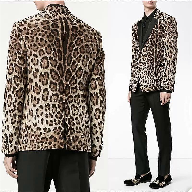 Leopard Print Men's Suits 2 Pcs Peak Lapel Slim Fit Suede Blazer BusinessTuxedos