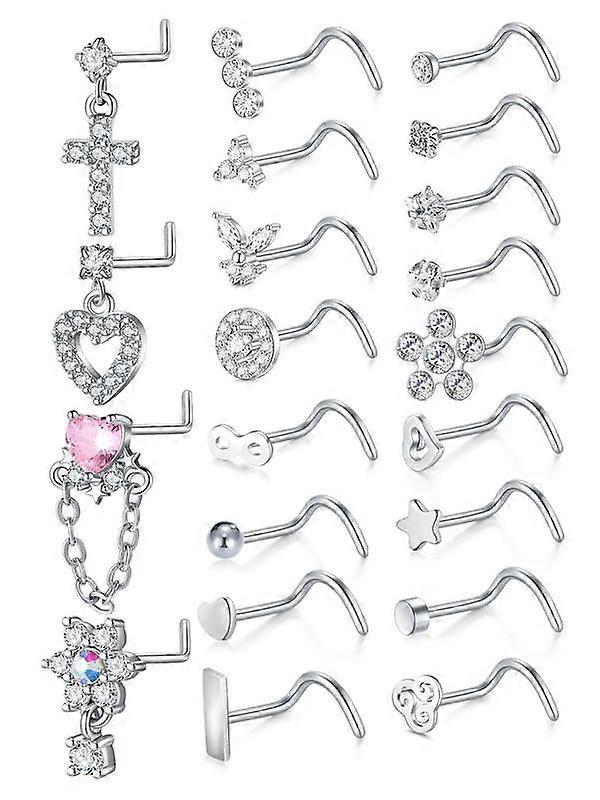 Rhinestone Decorated L-shaped Nose Rings, Heart & Cross & Butterfly & Flower Design Nose Studs, Body Piercing Charm Jewelry for Women & Men,