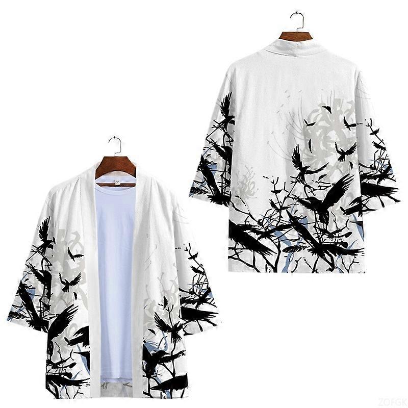 Summer Taoist Robe for Men, Loose and Trendy, Printed Cape with Cross Shore Flower, Thin Jacket, Half Sleeved Cardigan Top