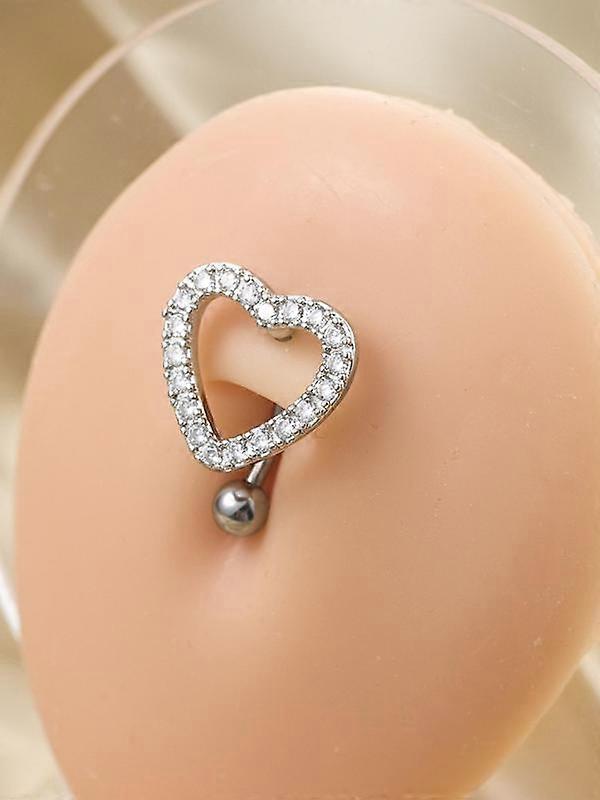 Rhinestone Heart Shaped Belly Ring, Stainless Steel Body?Piercing Jewelry for Women & Girls, Body Jewelry for Party, Daily Clothing Decor,