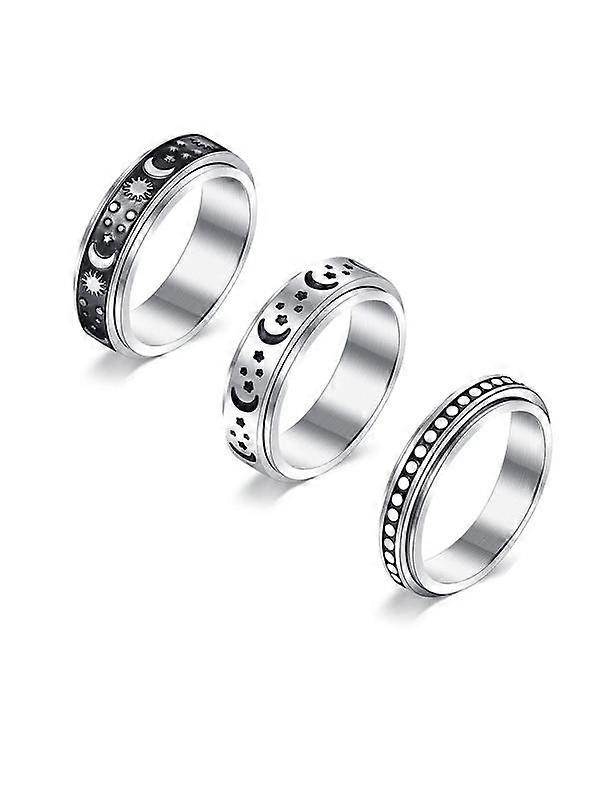 3pcs/set Simple Star & Moon Design Stainless Steel Rings, Rotating Decompression Rings for Both Men & Women, Elegant All-match Fashion Acces