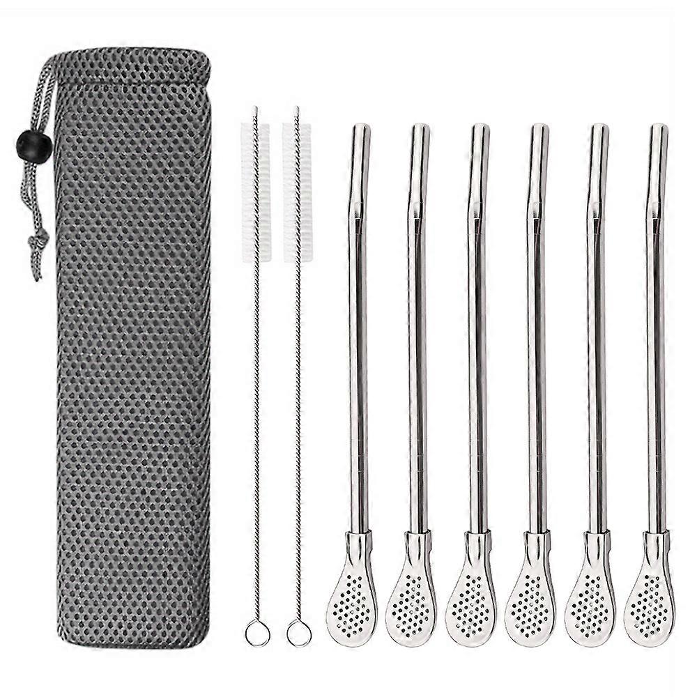 11Pcs/Set Reusable Stainless Steel Drinking Straws Washable Yerba Mate Spoon Filter Straw for Cocktail Bar Accessories