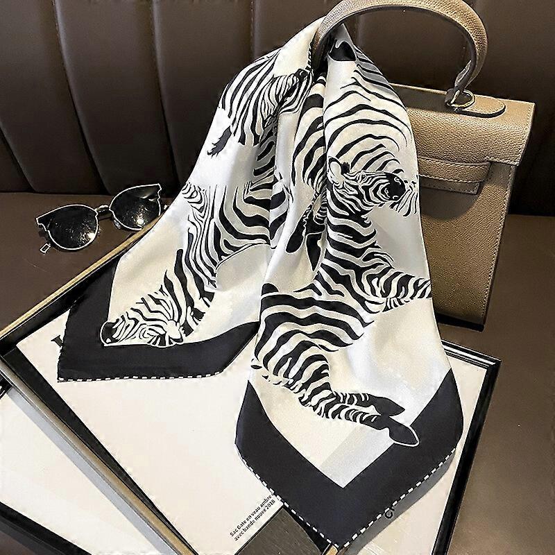 100% Silk Twill Scarf Women 14 Momme Kerchief Square Bandana Wrap Zebra 68*68cm