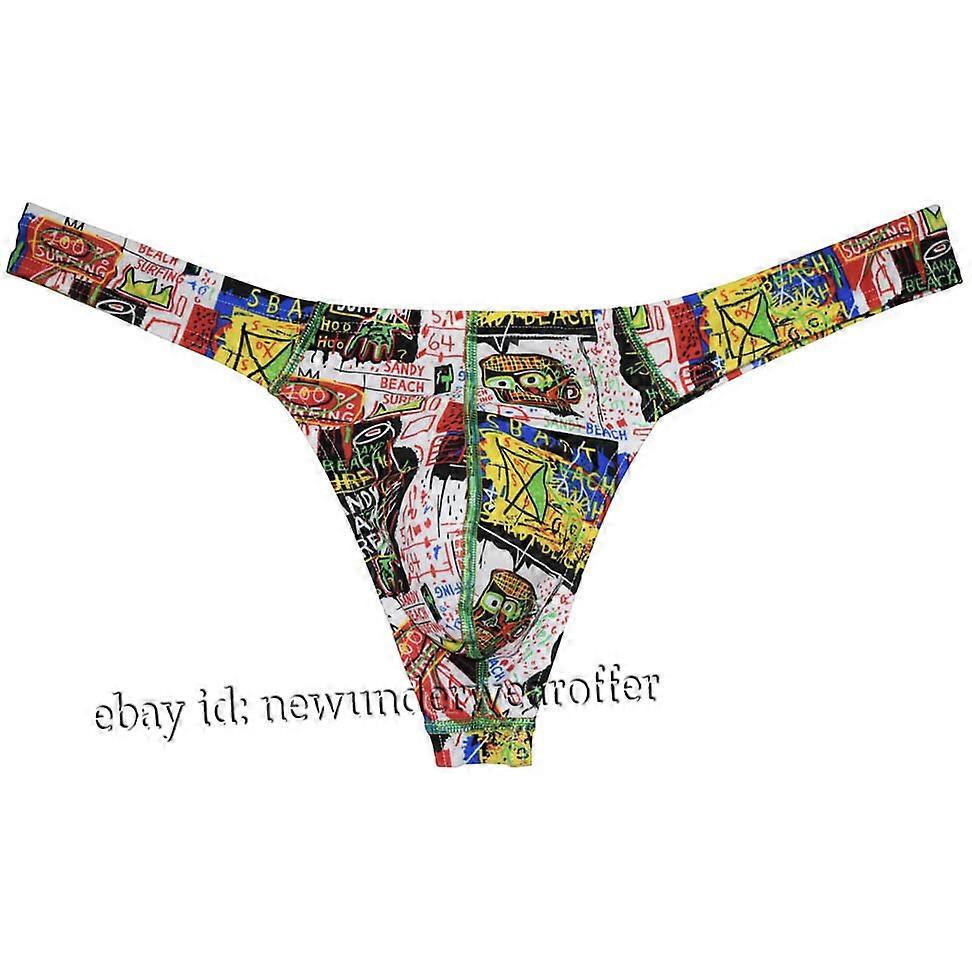 Hot Men Daily T-back Underwear Colorful Print Hipster Thong Underpants Jockstrap