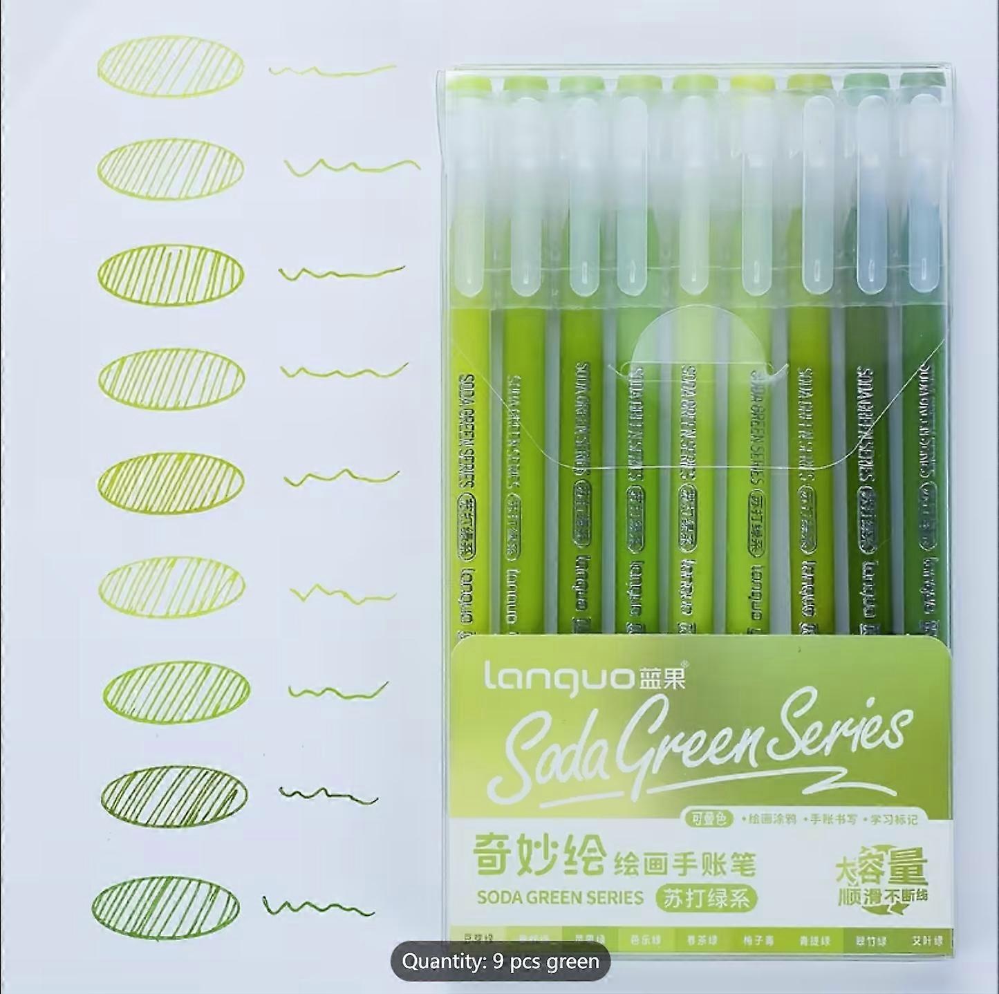 LANGUO 9 pcs New Color Gel Pens, 0.7mm Mid Tip, Suitable for Drawing, Note Taking, Card Coloring