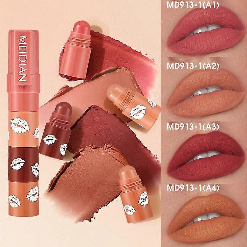 4 in 1 Lipstick,Multicolor Combination Lipsticks Velvety High Pigment Lip Makeup Non-marking Lip Gloss Moisturizing Long Lasting Lips Cosme