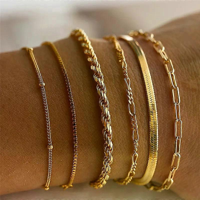 Bohemian Minimalist Metal Chain Women's Set of 6 Multi-layer Chain Simple Fashionable Bracelets Wedding Jewelry Birthday Gifts