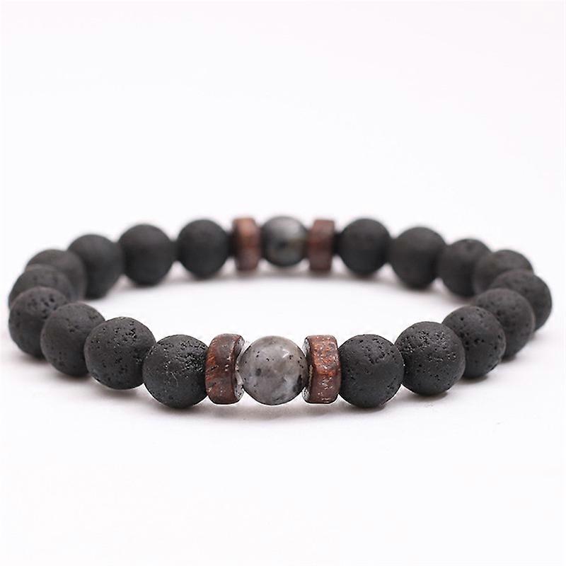 YIZIZAI Natural Lava Rock Stone Beads Strand Bracelet Wooden bead Accessories Black Charm Stone Men Women Jewelry Gift