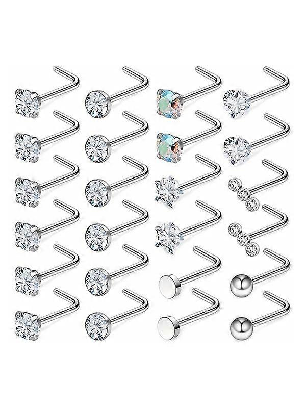 24pcs/set Rhinestone Decorated Stainless Steel Nose Studs, Nose Piercing Jewelry for Women & Men, Body Matching Jewelry for Parties, Daily C
