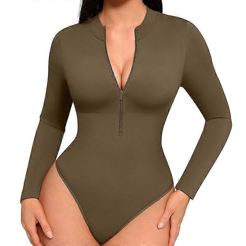 FeelinGirl Long Sleeve Bodysuit for Women Mock Turtle Neck Body Suits Zip Up Design Black Tummy Control Bodysuit Shirts fall Womenswear Co