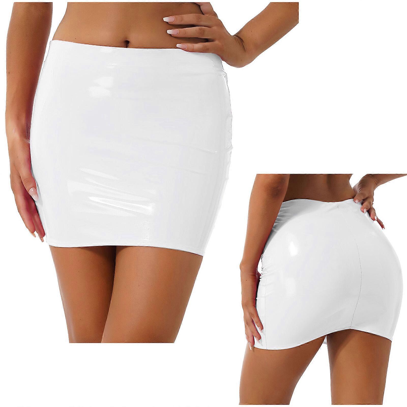 Women��s Bright Leather Mini Pencil Skirt Party Latex Solid Night Club Mini Skirt
