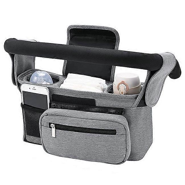 Large Stroller Organizer Bag Multi Compartment Travel Storage with Mesh Pocket Phone Holder Cup Slots Durable Oxford Cloth