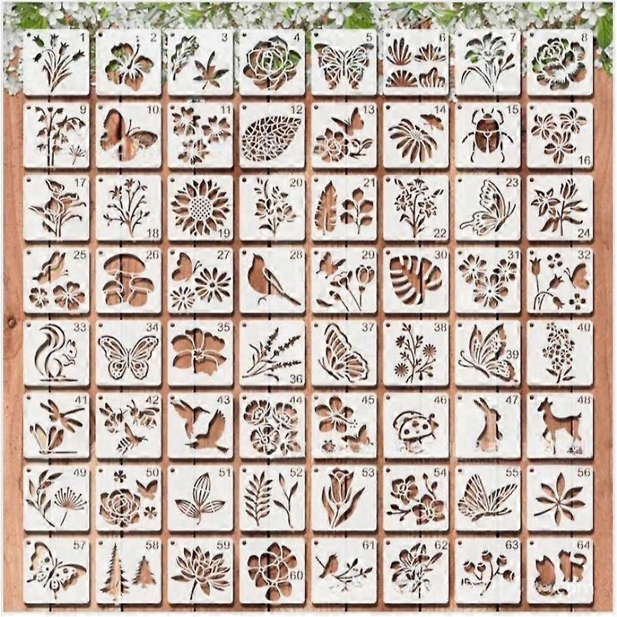 64/20 PCS Plant and Flower Painting Template Hollow Graffiti Template Spray Mold