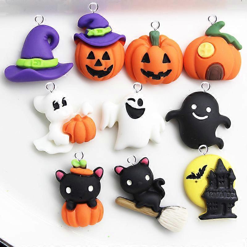10Pcs New Ghost Pumpkin Halloween Sets Resin Charms for Earring Key Chain Bracelet Pendant Hairpin Jewelry Findings Making C682