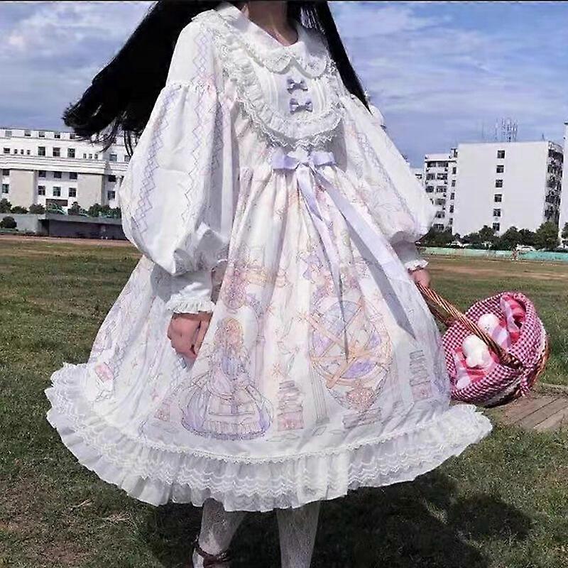 Women Girl Kawaii Gothic Lolita Dress Cute Costume Ruffle Puff Sleeve Cosplay
