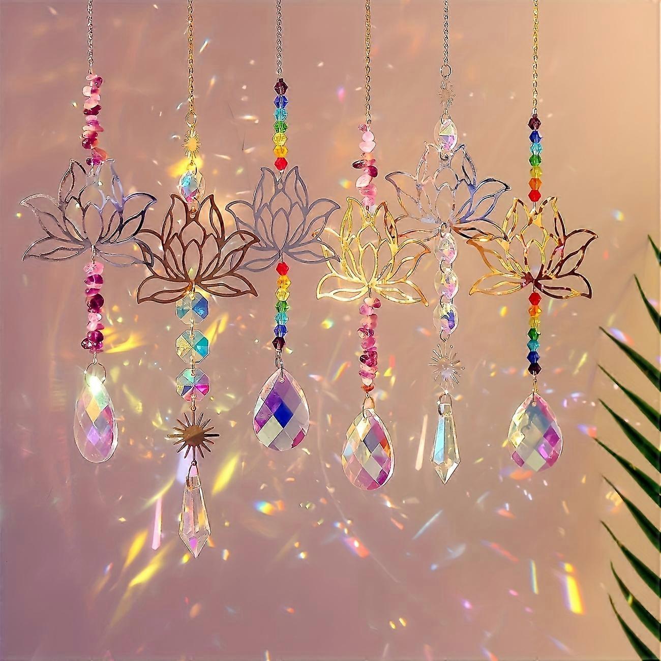 6pcs Lotus Glass Light Catcher Set - Chakra Bead Crystal Ornaments for Home Window Display, Wedding Decoration