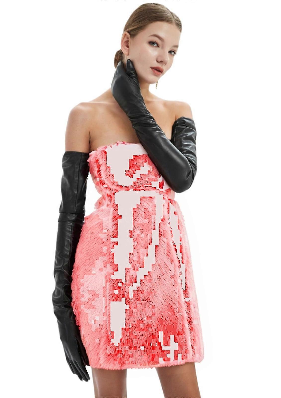Women Super 80cm(31.5") Long Plain Real Leather Evening/Opera Gloves Black