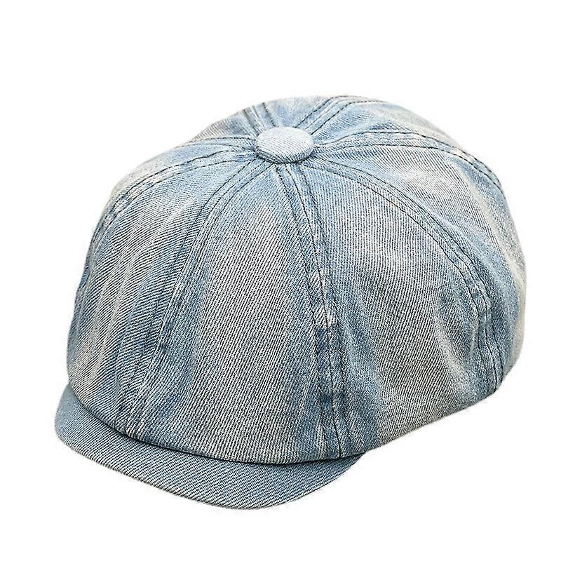 Men Casual Washed Denim Newsboy Cap Beret Cabbie Baker Boy Hat