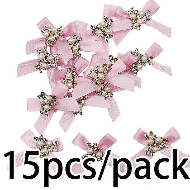 (15pcs/pack)3*4.5cm Pearl Inlaid Zircon Bow Holiday Party Decoration Clothing Sewing Accessories Children's Hair Circle DIY