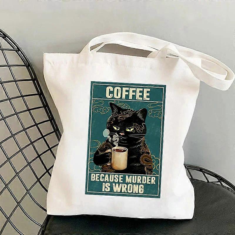 Retro Funny Cat Ladies Handbag Fashion Casual Shoulder Bag Eco-friendly Large Capacity Portable Travel Shopping Bag Schoolbag