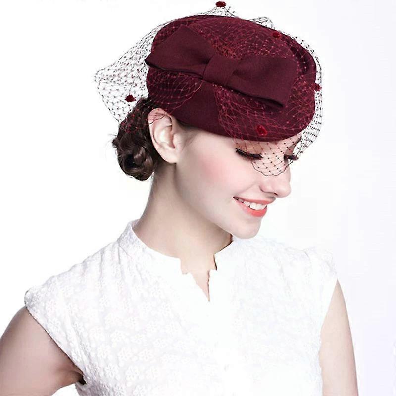 Womens Dress Fascinator Wool Felt Pillbox Hat Party Wedding Bow Veil A080