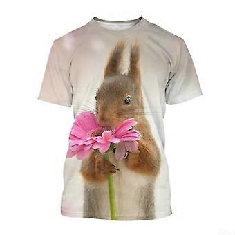 Summer Cute Squirrel 3D Round Neck Printed Adult and Children's Casual Short Sleeve T-shirt