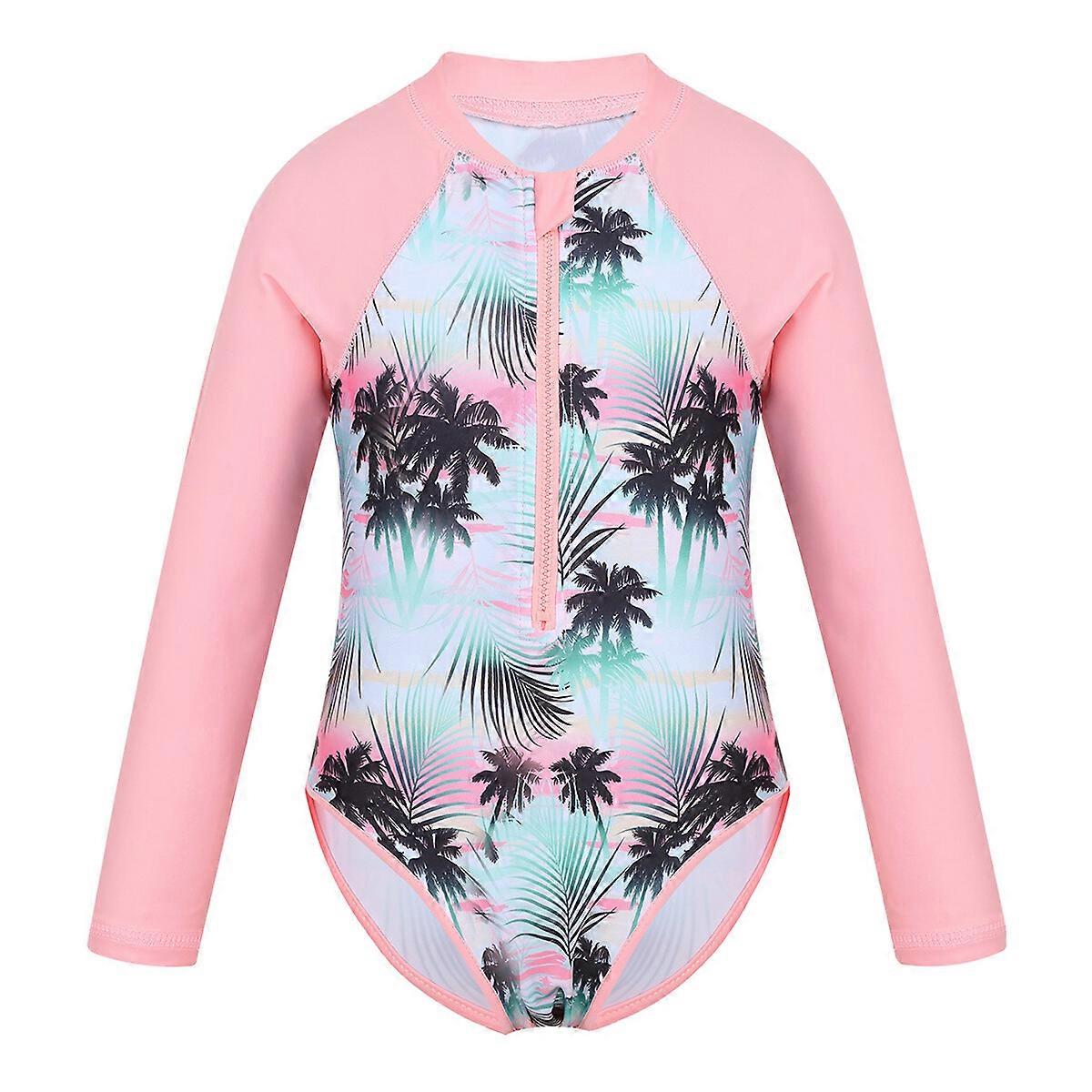 One-piece Kids Girls Palm Printed Long Sleeve Swimsuit Bathing Suit Swimwear
