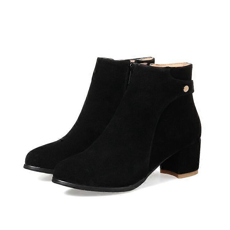 Women's Round Toe Block Low Heels Ankle Boots Winter Faux Suede Zip Winter Fall