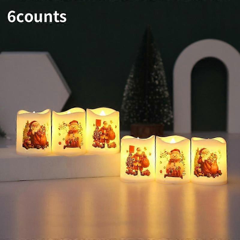 6pcs Christmas LED Candle Lights Santa Snowman Decorations, Perfect for Holiday Scene Setting, Create Festive Atmosphere at Home