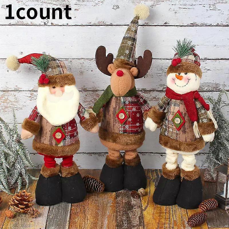 Christmas Decorations Set, Santa Claus Reindeer Snowman Figurines, Vintage Plaid Design, Window Display Bedroom Dining Table Decoration
