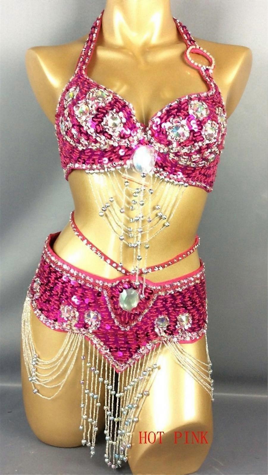 Professional Performance Belly Dance hip scarf Costumes Bra&Belt Set India S/M/L