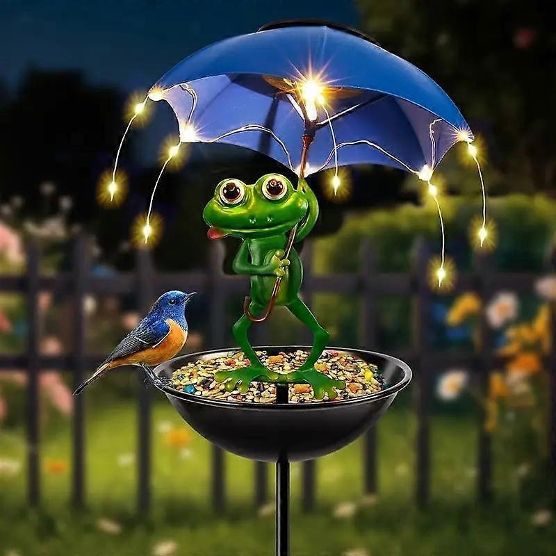 Solar Powered Frog Design Garden Decor, Creative Garden Decor with Umbrella & Bird Feeder, Solar Garden Lights, Outdoor Garden Decorative Li