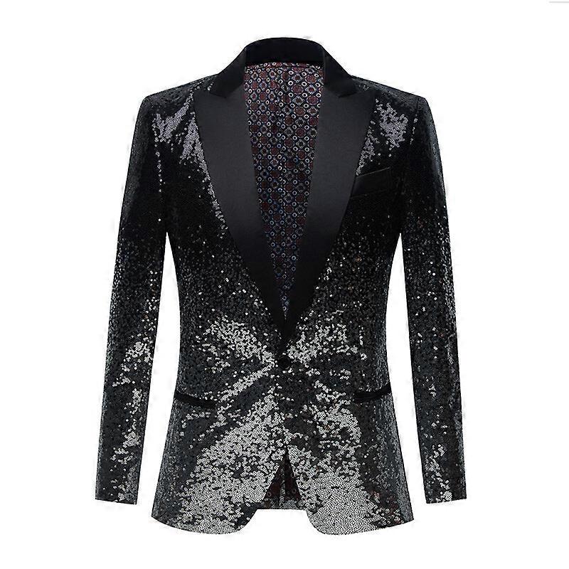 Men Two Tone Gradient Color Shiny Sequin Jacket Suit Blazer Coat Wedding Party