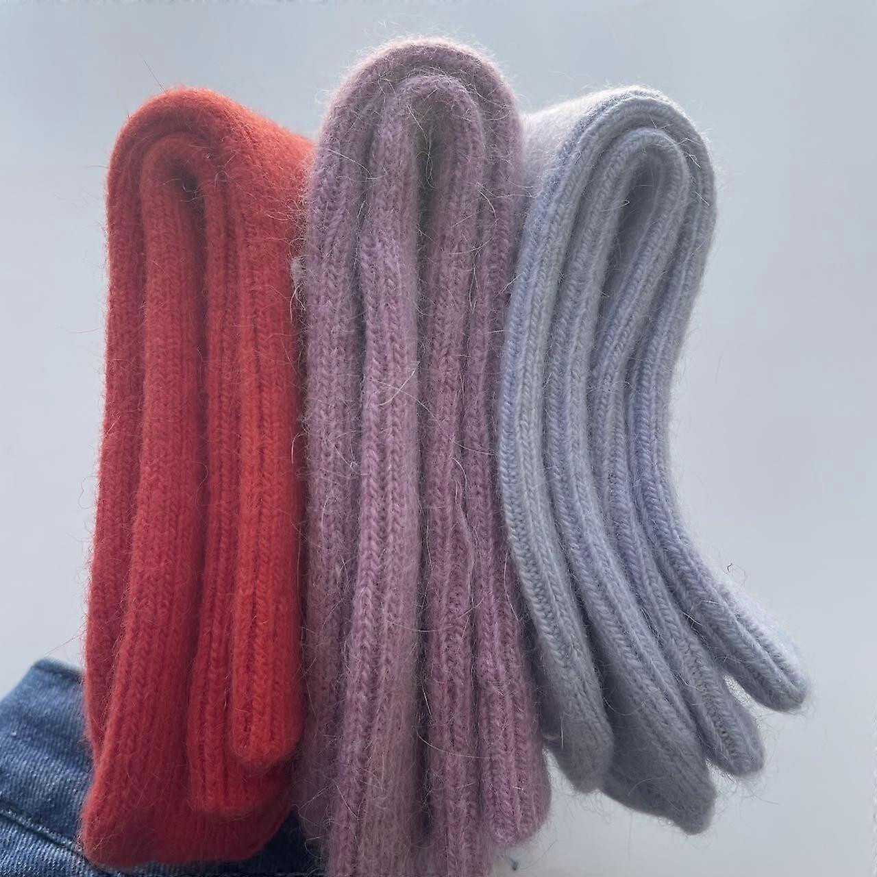 3Pairs 100% Wool WomenThick Thermal Fuzzy Color Winter Warm Boot Duty Cozy Socks