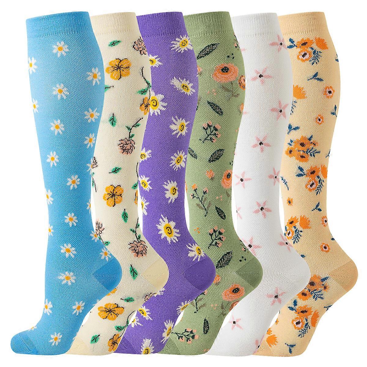 6 Pairs Floral Compression Socks Women Men Medical Breathable Knee High Nurse Flowers Compression Socks Women Sports Nurse
