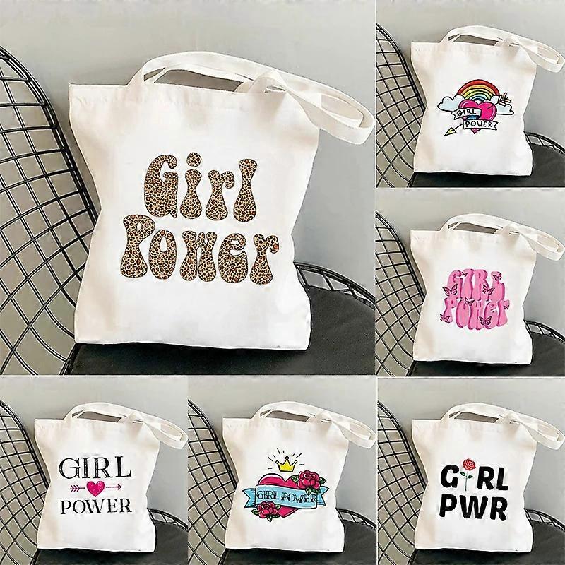 Fashion GIRL POWER Printed Canvas Shoulder Bag Ladies Casual Handbag Eco-friendly Large Capacity Portable Travel Shopping Bag