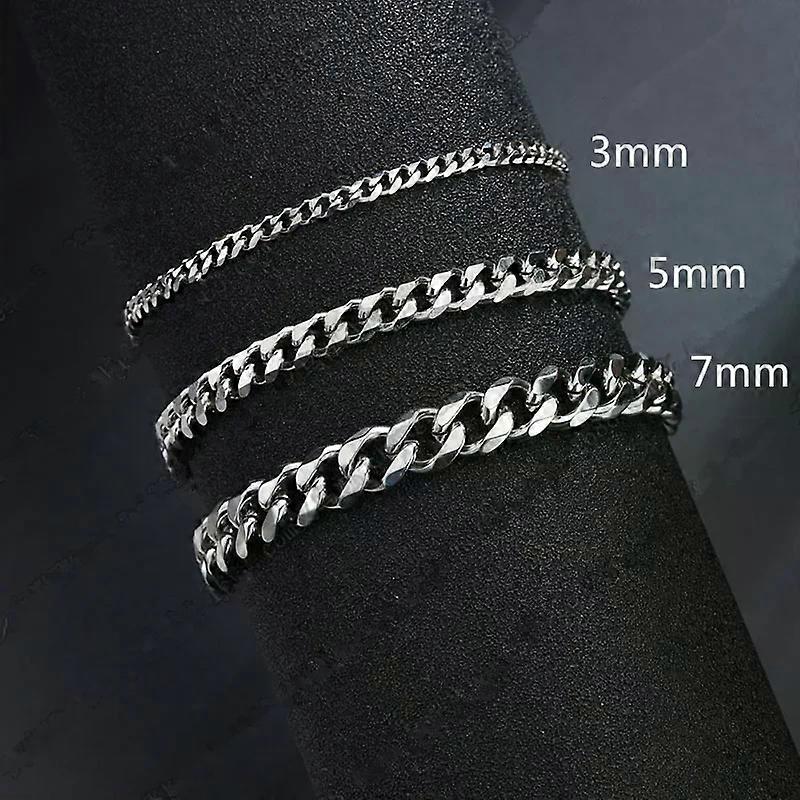 3/5/7mm Men Bracelets Stainless Steel Chain Bracelets Chunky Cuban Silver Color Link Chain Classic Punk Heavy Male Jewelry Gifts