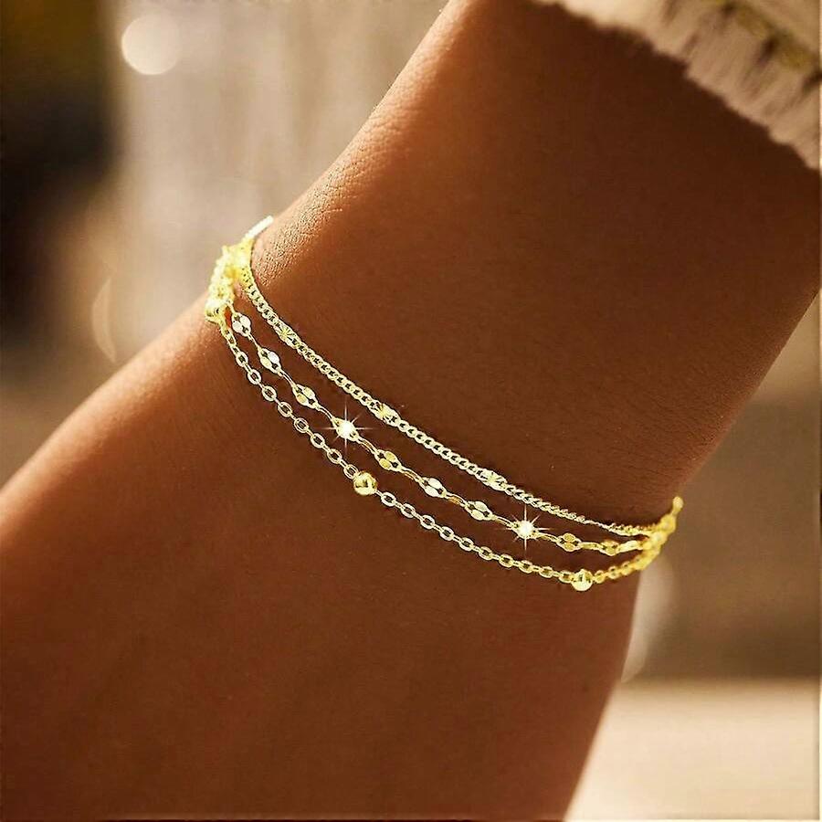 Sparking 925 Sterling Silver Chain Bracelets For Women Luxury Elegant Three Layer Geometric Bead Bracelet Party Wedding Jewelry